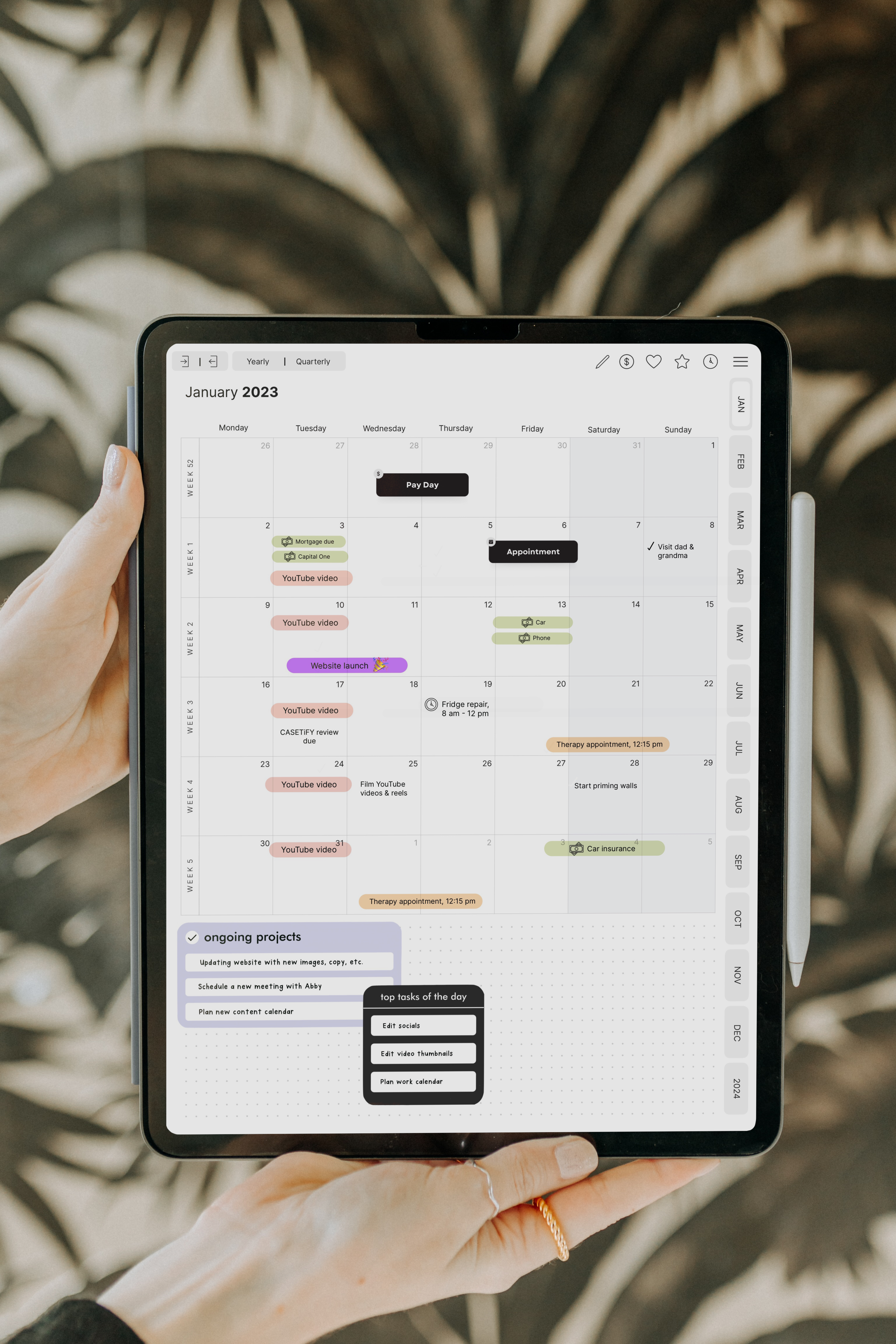 Set reminders, schedule events, and create alerts without ever having to leave your digital planner. Compatible with Apple and Google Calendar, and Apple Reminders.