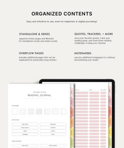 This digital reading journal allows you to track books you are currently reading, write thorough reviews of your novels, track different book series, document your favorite quotes, set reading goals, and track your reading throughout the year.