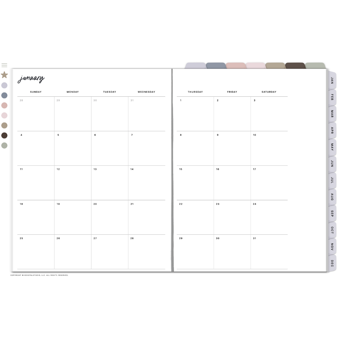 This essential section of your digital planner provides a clear monthly overview
