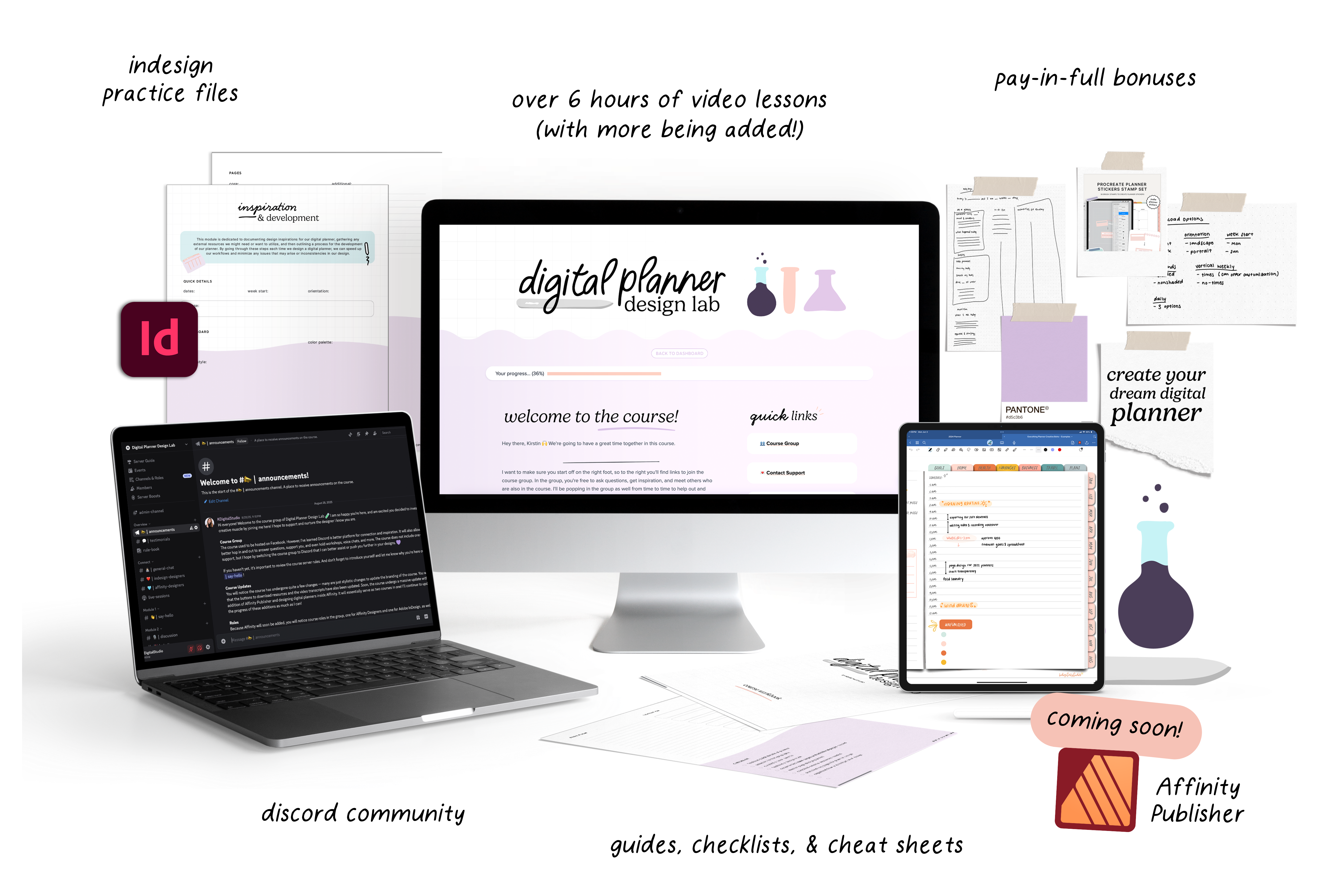 Not theory. Not simplified demos. The real workflow, the real tools, the real techniques — in both InDesign and Affinity — so you can build planners that work exactly the way you want them to.