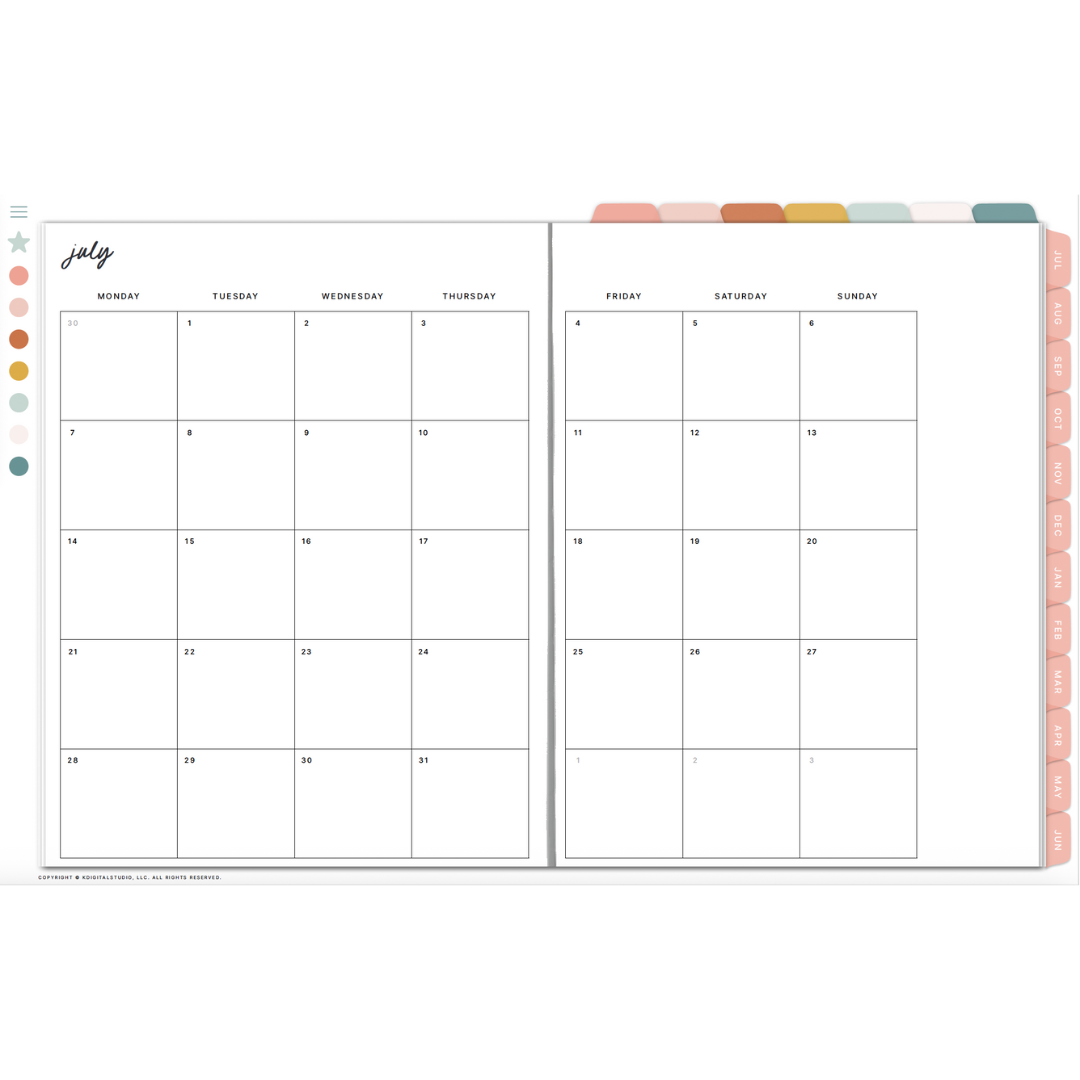 This essential section of your digital planner provides a clear monthly overview