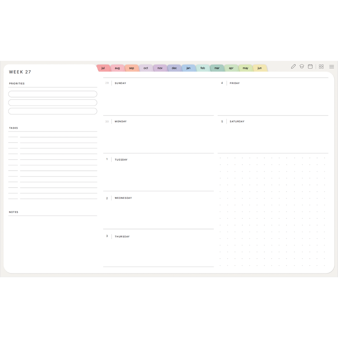 Digital stickers are reusable graphic elements designed for digital planners and note-taking apps. Instead of peeling and sticking like physical stickers, you drag, drop, resize, and reuse them on your iPad as many times as you’d like.
