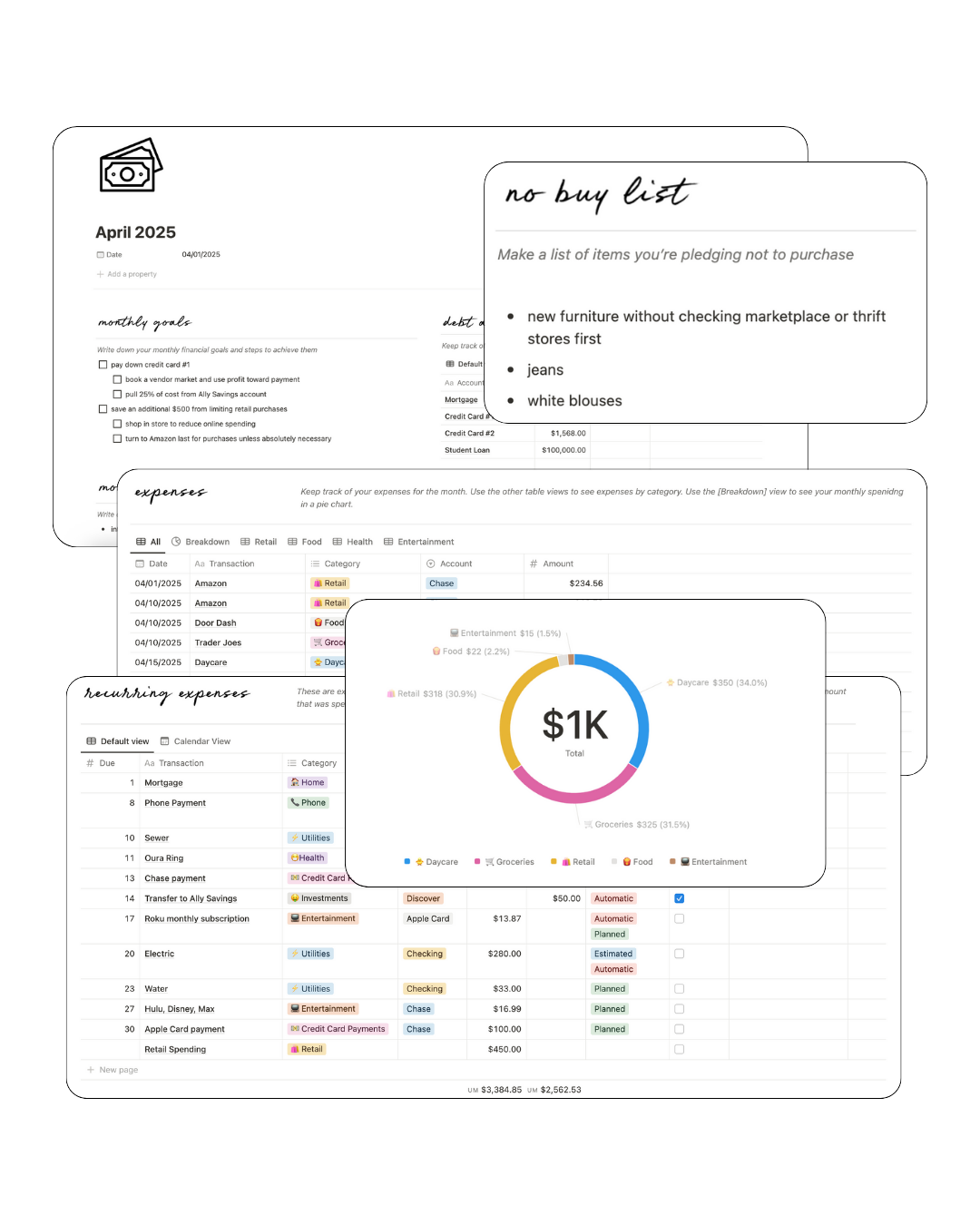 Notion is a dynamic all-in-one workspace that is highly customizable. You can make it as simple or as complex as your needs. Notion is a great place for budgeting and financial tracking because it allows you to organize transactions in a visually pleasing but robust way!
